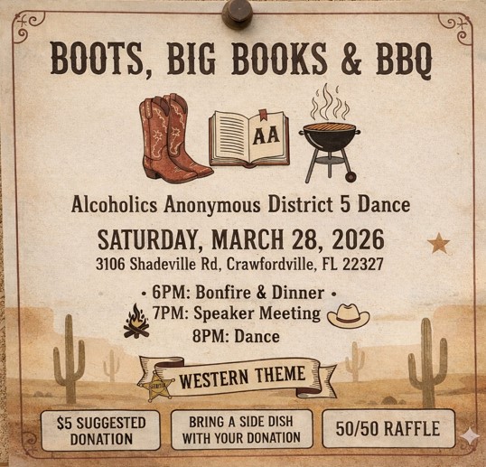 District 5 will host a western themed dance on Saturday March 28, 2026 at Southside. All are welcome.